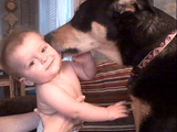 人間の赤ちゃんが好き過ぎてペロペロと舐めまくる犬と、とっても嬉しそうな赤ちゃん